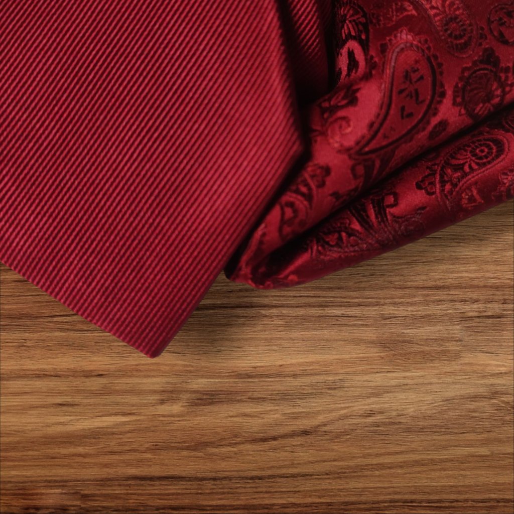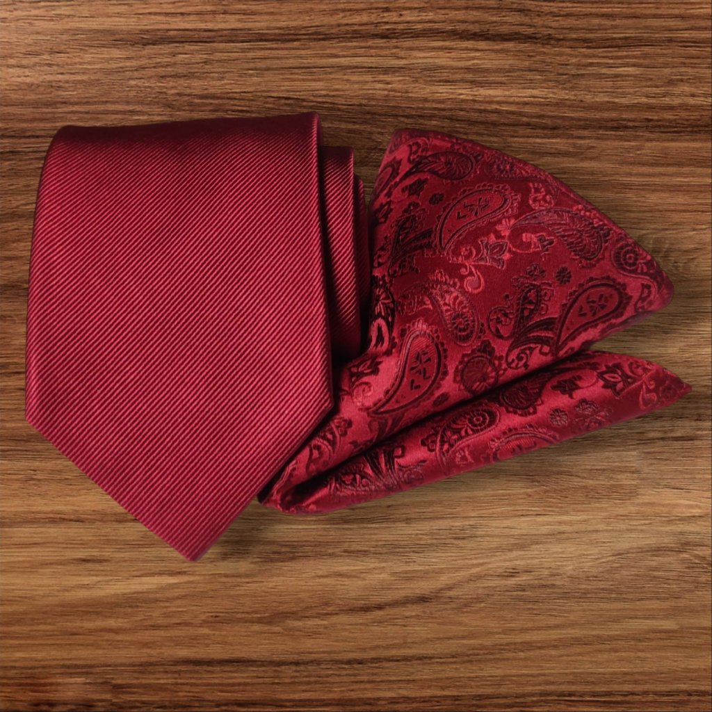 Strukturovaná kravata, jednobarevná hedvábná kravata, 100% jemné hedvábí a k tomu kapesníček s paisley motivy.