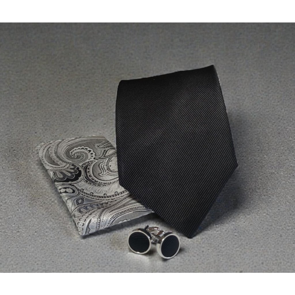 Set kravata, kapesníček a knoflíčky černá 900-24