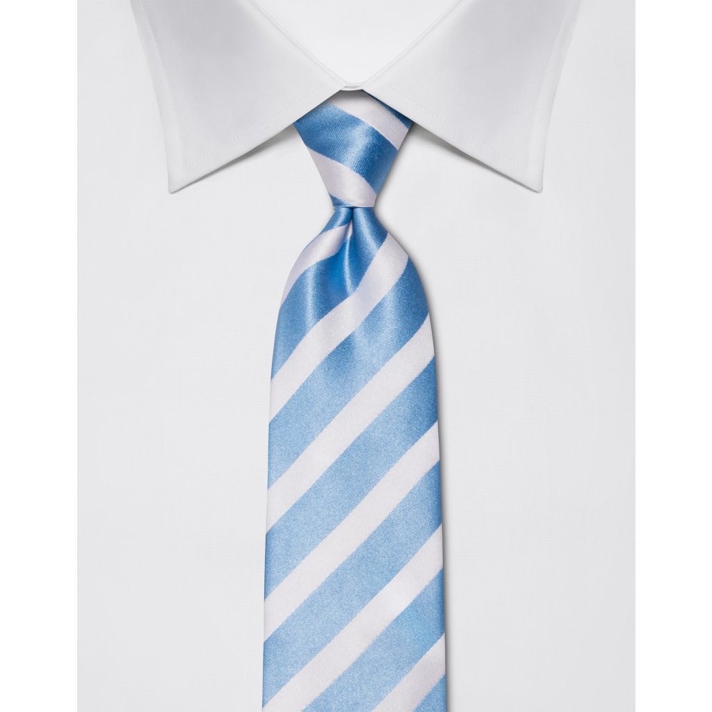 modrá výrazná kravata s bílým pruhem