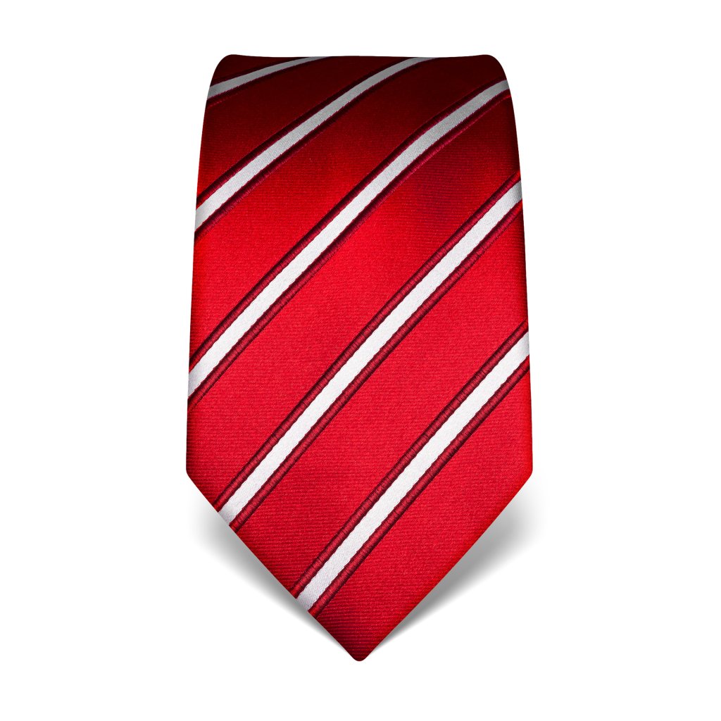Jednobarevná hedvábná kravata, červená s pruhem,