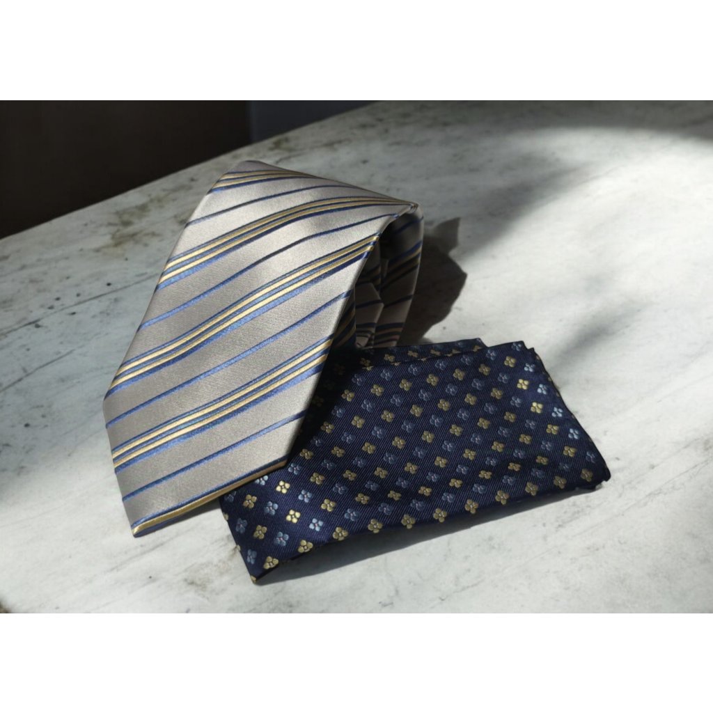Hedvábná kravata Beytnur, jemně modrá s proužky s kapesníčkem, elegantní design