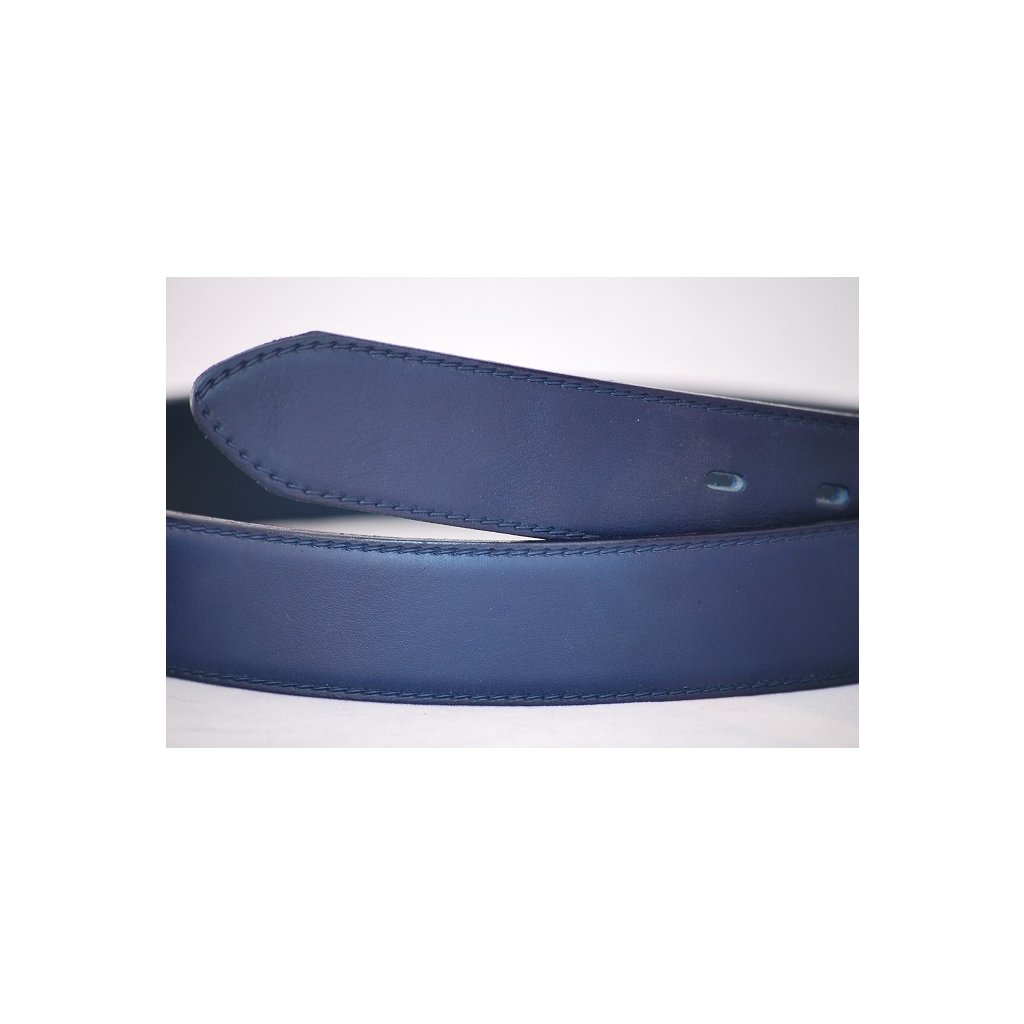 Modrý luxusní pánský kožený pásek o šířce 35 mm elegantní - plná spona