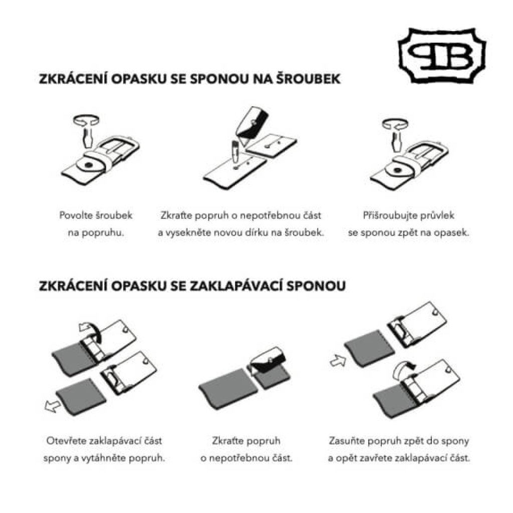 Opasek lze jednoduchým způsobem upravit, odcvaknete sponu a uříznete dle Vašich požadavku a sponu zase nasadíte.