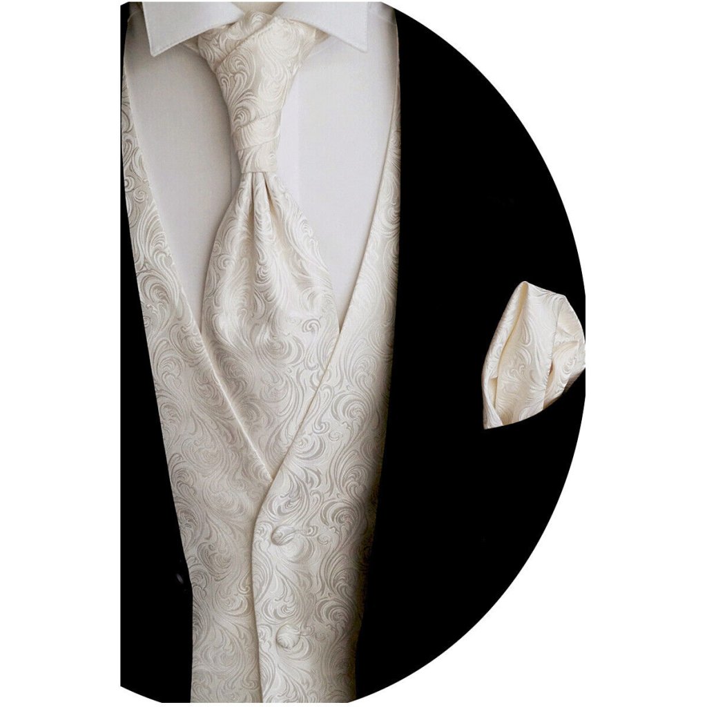 Francouzká kravata s kapesníčkem, skvělý svatební set, v odstínu ivory, vhodný pro ženichy i družbu a svatební hosty