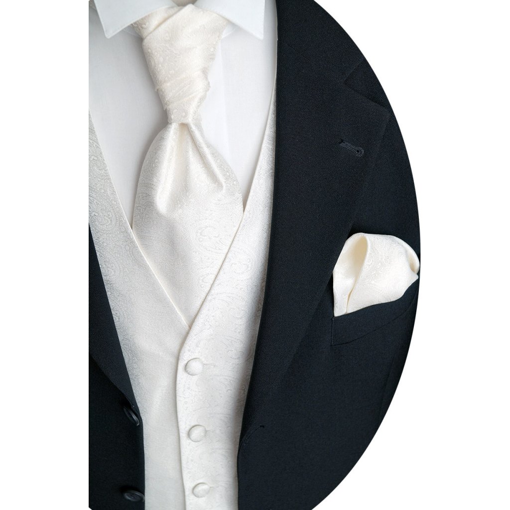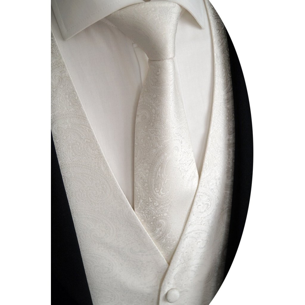 Beytnur svatební vesta - krémová, jemný prošitý vzor set obsahuje: vesta, kravata, plastron a kapesníček